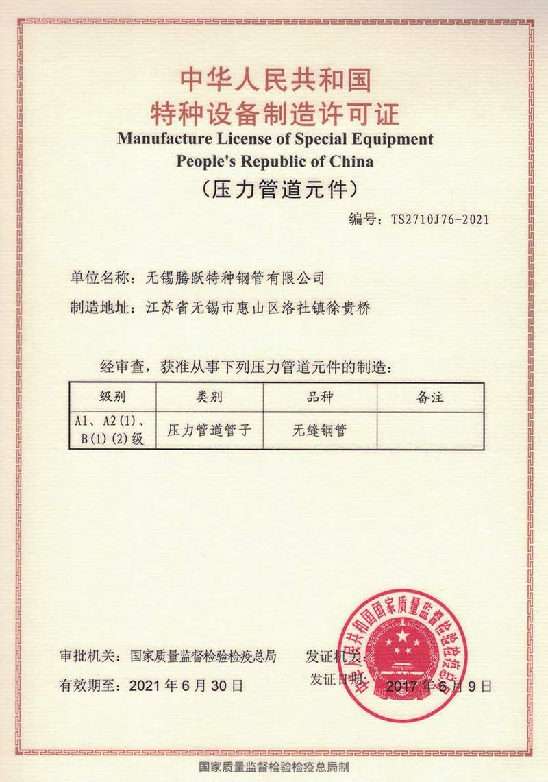 無錫騰躍特種鋼管有限公司創(chuàng)建于1987年,地處江蘇省無錫市惠山區(qū)洛社鎮(zhèn)。公司占地面積18萬平方米,現(xiàn)有員工350人,是一家專業(yè)生產(chǎn)不銹鋼無縫管的企業(yè),年產(chǎn)能5萬噸。主要規(guī)格:外徑6~630mm、壁厚0.7~40mm。主要材質(zhì):奧氏體、奧氏體-鐵素體、鎳基合金等。 公司是中石化、中石油、中海油、核電的供應(yīng)商網(wǎng)絡(luò)成員單位,是江蘇省AAA級信用單位。公司先后通過ISO9001質(zhì)量管理體...